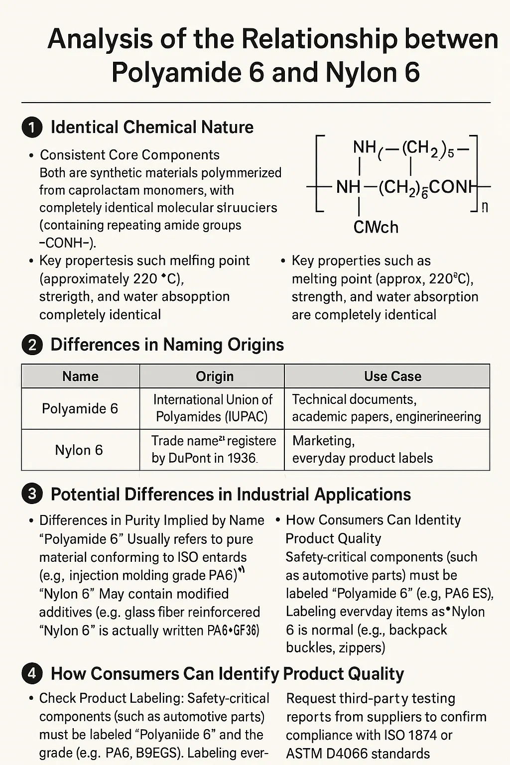 • Rialacha i gCeilt an tSlabhra Soláthair: Úsáideann roinnt soláthróirí an " níolón 6 " lipéad chun cumaisc d'ábhar athchúrsáilte a dhíol (chun costais a laghdú), agus éilíonn "Polaiimíd 6" tuarascáil ar chomhdhéanamh.