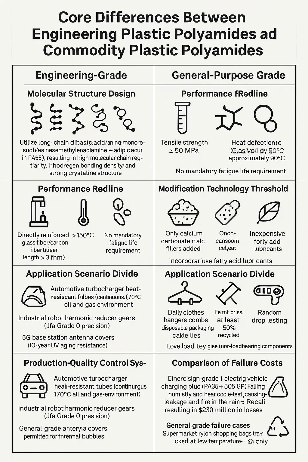 Difríochtaí lárnacha idir Polaimídí plaisteacha innealtóireachta agus polaimídí plaisteacha tráchtearraí